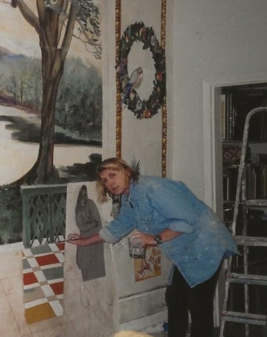 Restauration de peintures murales dans différents monuments historiques (direction du chantier de restauration des fresques de la galerie Mazarine à la bibliothèque nationale, ...)